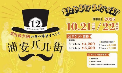 チケットは前売り券が3枚綴り=4,200円▽5枚綴り=6,500円。当日券が3枚綴り=4,500円▽5枚綴り=7,000円。チケット1枚につき、原則ドリンク1杯+パルメニュー1品。 チケットは浦安商工会議所やバル街参加店舗、市内セブンイレブン各店舗(一部販売しない店舗もある)で販売。